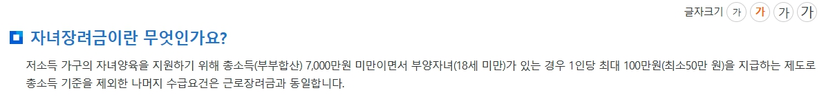 홑벌이/맞벌이 | 7,000만 원 미만 | 자녀 1인당 최대 100만 원 (최소 50만 원) |