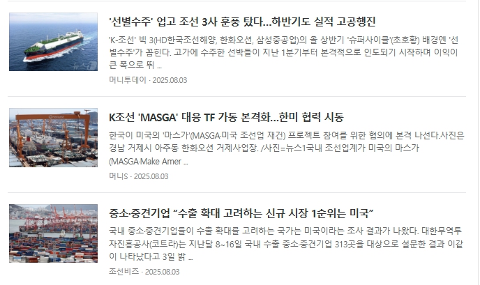 - 기술력: 친환경 선박 기술 확보 → ESG 트렌드와 맞물려 기대 상승