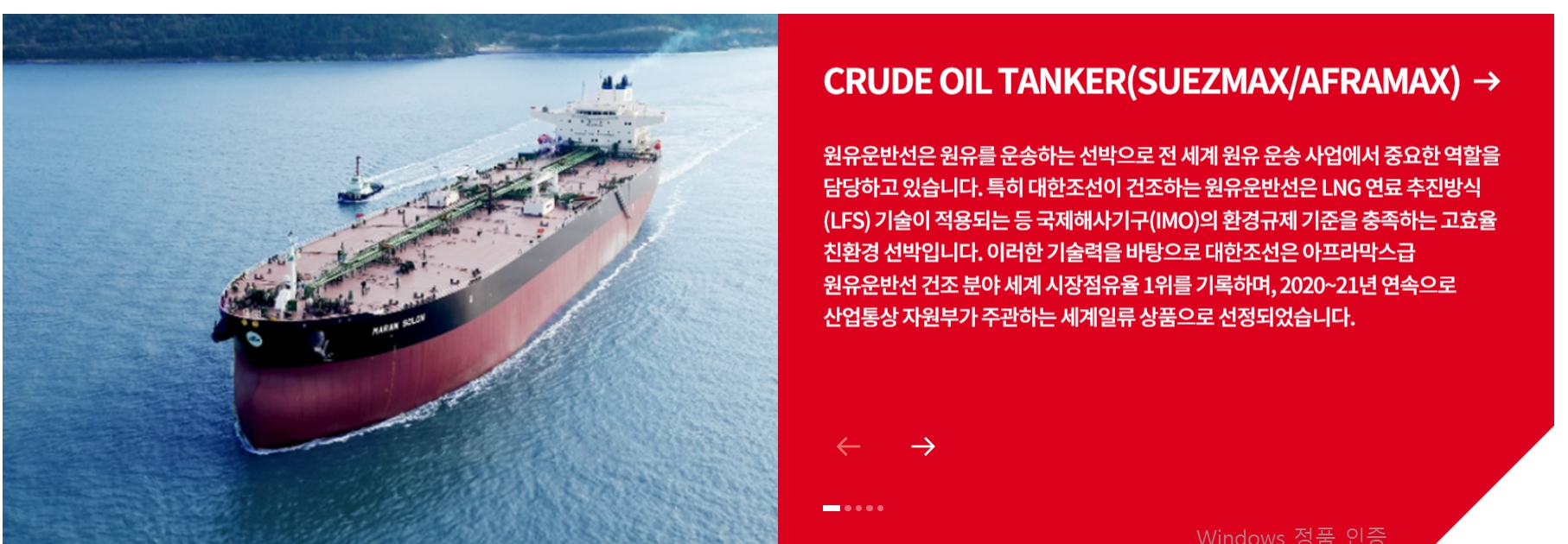 - 사업모델: 유조선, 셔틀탱커, 수에즈막스 탱커 등 고부가가치 선박 생산