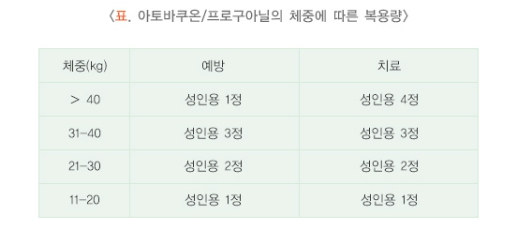 아토바쿠온/프로구아닐 여행 1~2일 전 시작 → 매일 복용 → 귀국 후 7일 내성 적고 편리. 임신부·신장질환 주의