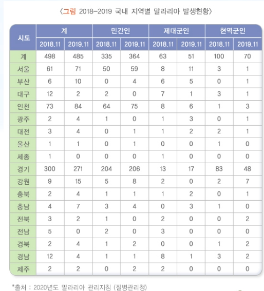 - 국내에서는 국립중앙의료원에서 말라리아 치료약을 무상 공급하므로, 병원 진료 시 여행력을 꼭 알리세요.