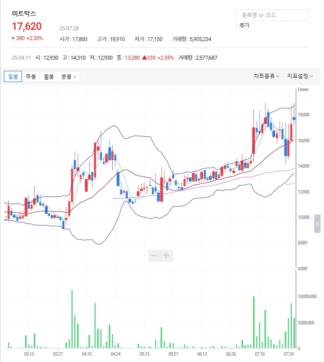 📈 미트박스 차트 기술적 분석 (2025년 7월 기준)
