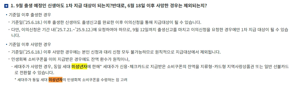 ✅ 신생아도 민생회복 소비쿠폰을 받을 수 있나요?