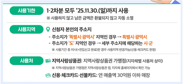 - 단, 세대주가 사망했을 때 동일 세대 미성년자에 한해, 남은 쿠폰 잔액을 지역사랑상품권 또는 일반 선불카드로 전환하여 계속 사용 가능