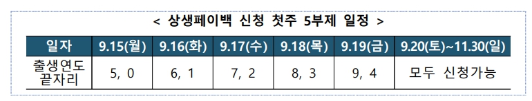 - 9.15 ~ 9.19: 출생연도 끝자리 기준 5부제