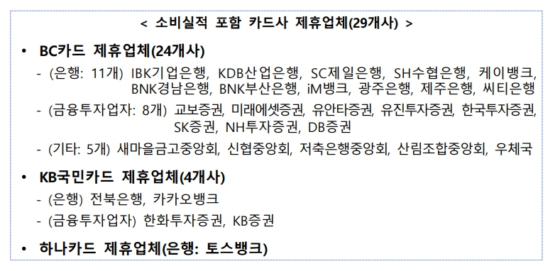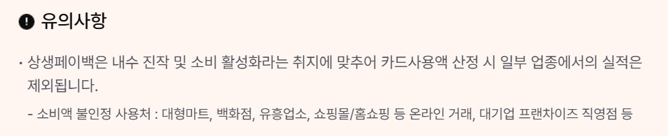 | 실적 제외처 | 대형마트, 온라인몰, 배달앱 등 |