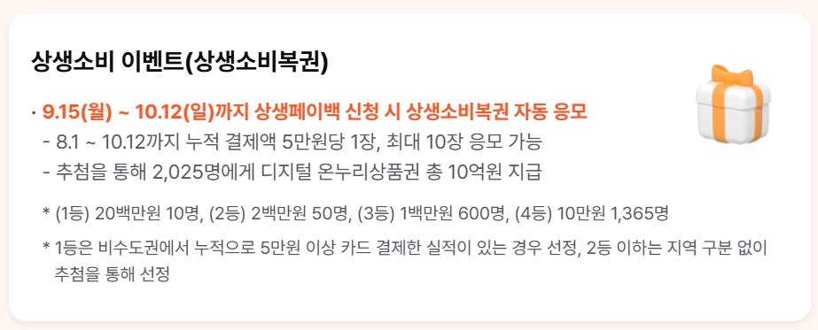 상생페이백 신청자라면 자동으로 소비복권도 응모됩니다!