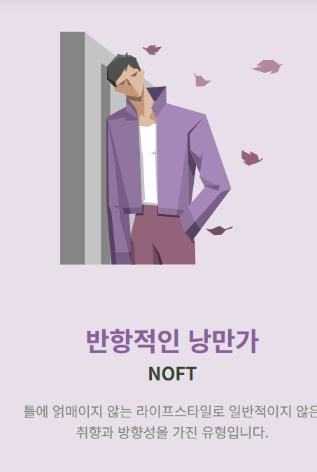 NIFT = 냉정 + 외향 + 패션 + 튀는 스타일 → 시크한 자유인