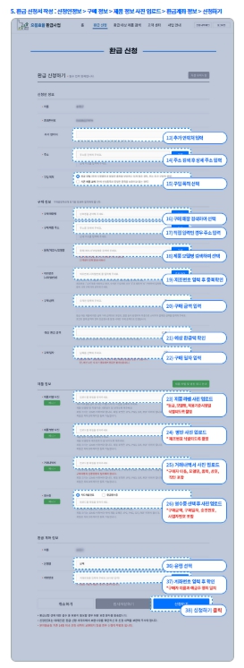 - 반드시 본인 명의 계좌 입력 (대리 신청 시에도 구매자 명의 계좌 권장)