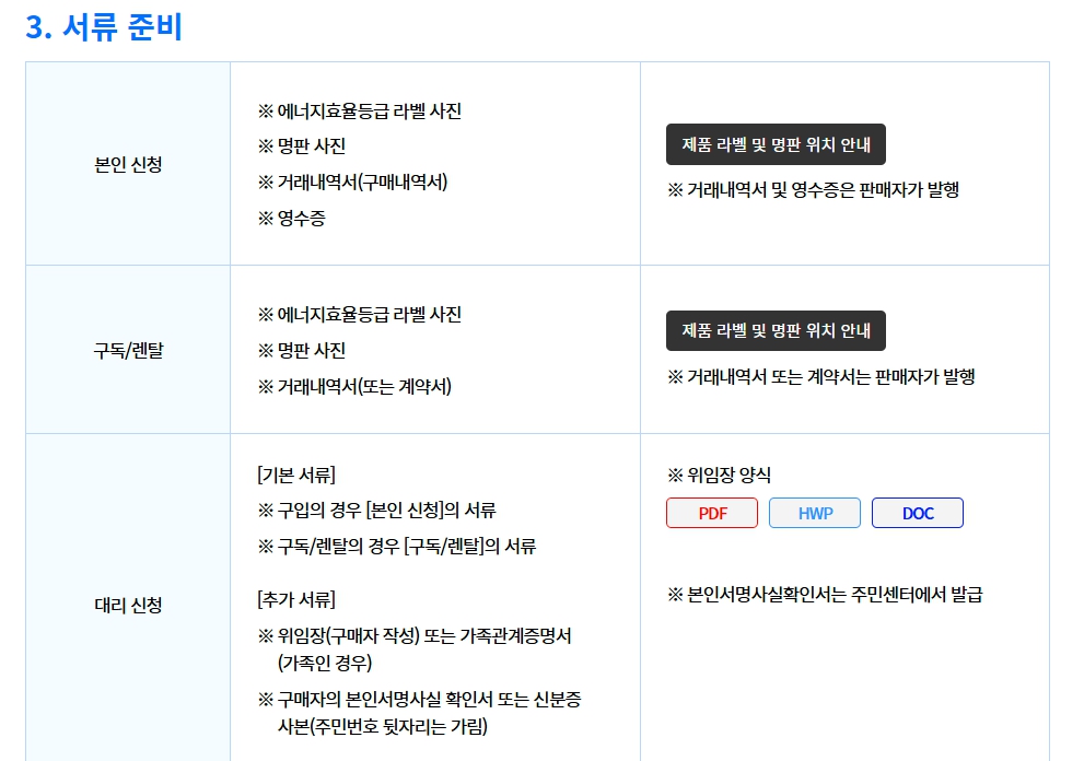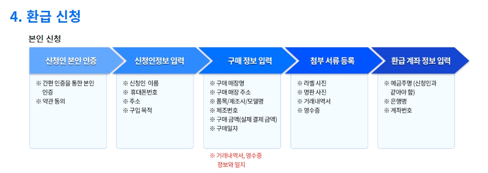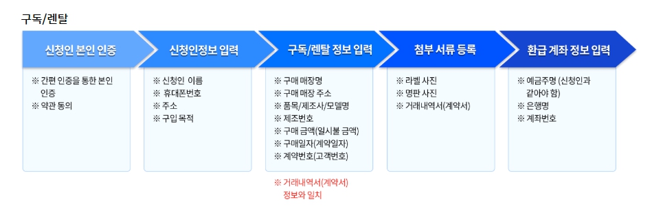 | 본인 신청 | 라벨 사진, 명판, 거래내역서, 영수증 |
