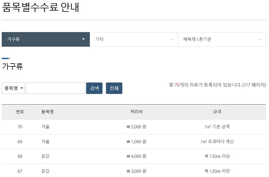 📌 Tip. 가구 크기나 단 수에 따라 수수료가 달라지므로, 신청 전 규격 체크는 필수입니다.