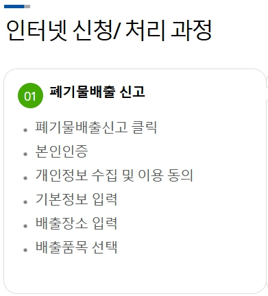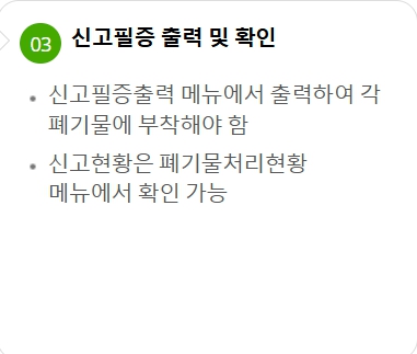 - 폐기물에 신고번호 부착 → 정해진 날짜에 배출