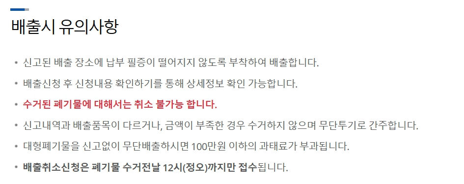 👉 지자체마다 다르지만, 보통 배출 예정일 기준 1~3일 전까지는 환불 또는 변경 가능합니다.