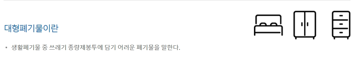 👉 가정에서 생활폐기물 봉투(종량제 봉투)에 담기 어려운 모든 물품이 해당됩니다. 아래 “대형폐기물 기준” 참고!