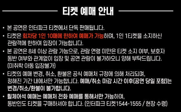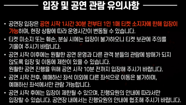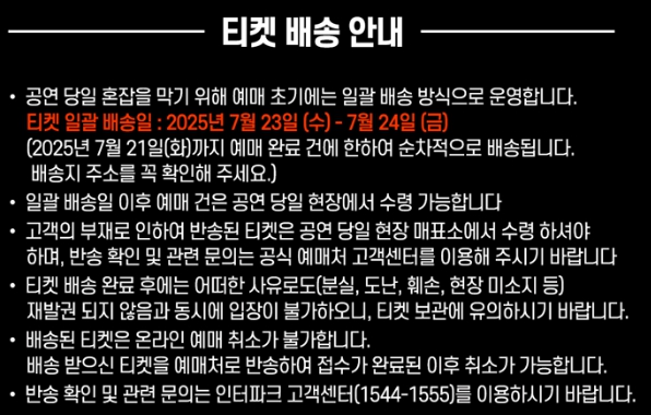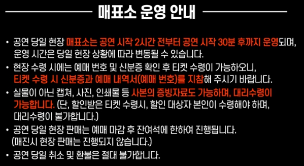 - 예매는 인터파크 또는 멜론티켓을 통해 사전 확보 필수