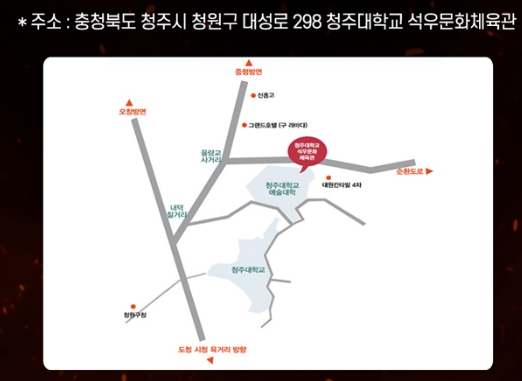 - 💡 특징: 청주대학교 내 위치한 중대형 규모의 다목적 실내 체육관으로, 넓은 무대와 쾌적한 좌석 구조를 자랑합니다.