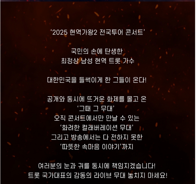 2025년 하반기 ‘현역가왕2 콘서트’ 일정이 드디어 공개되었습니다.