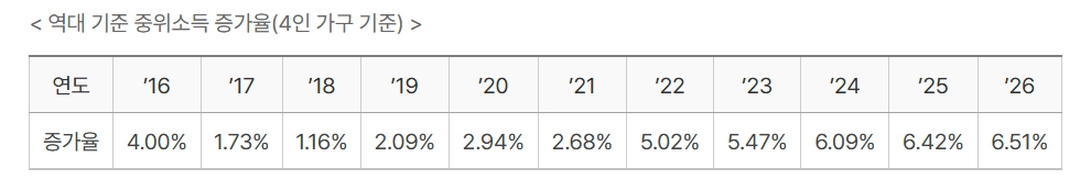 📍 2026년 기준 중위소득 변동 현황