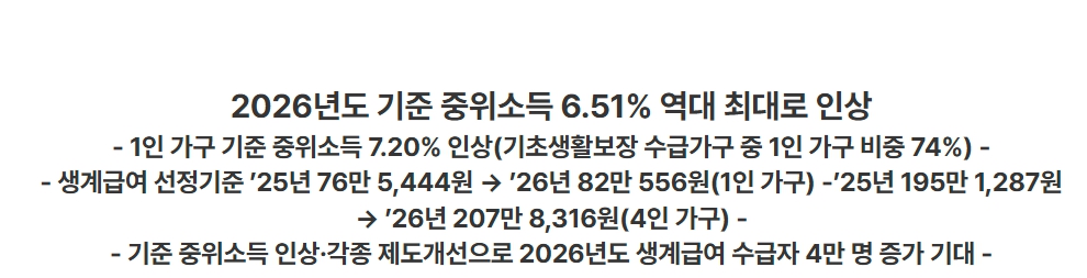📌 이번 2026년 기준 중위소득 인상의 의미