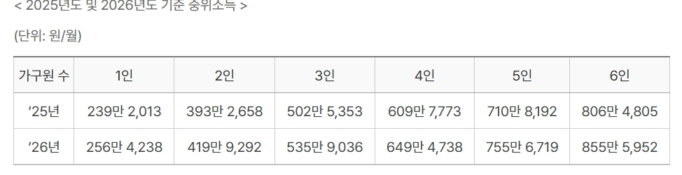 📎 2026년 기준 중위소득 결론