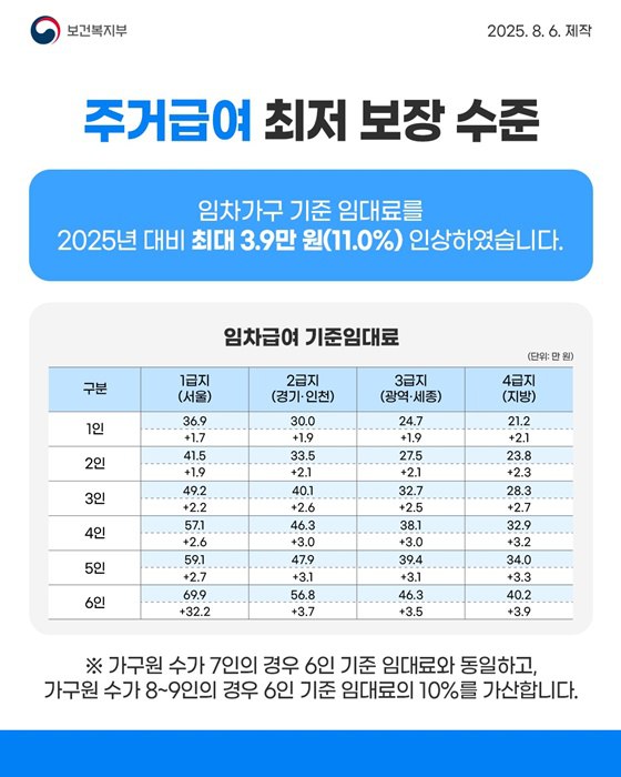 - 지역·가구원별로 임대료 상향, 최대 3.9만 원↑