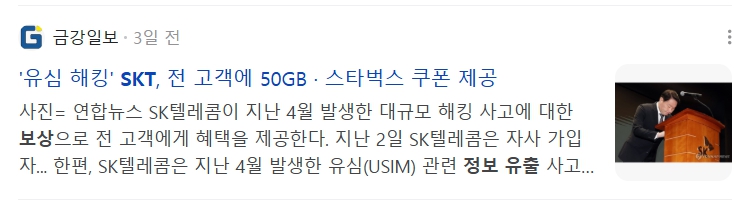 👉 계좌번호나 카드번호 같은 금융정보는 유출되지 않았다고 SKT는 밝힘